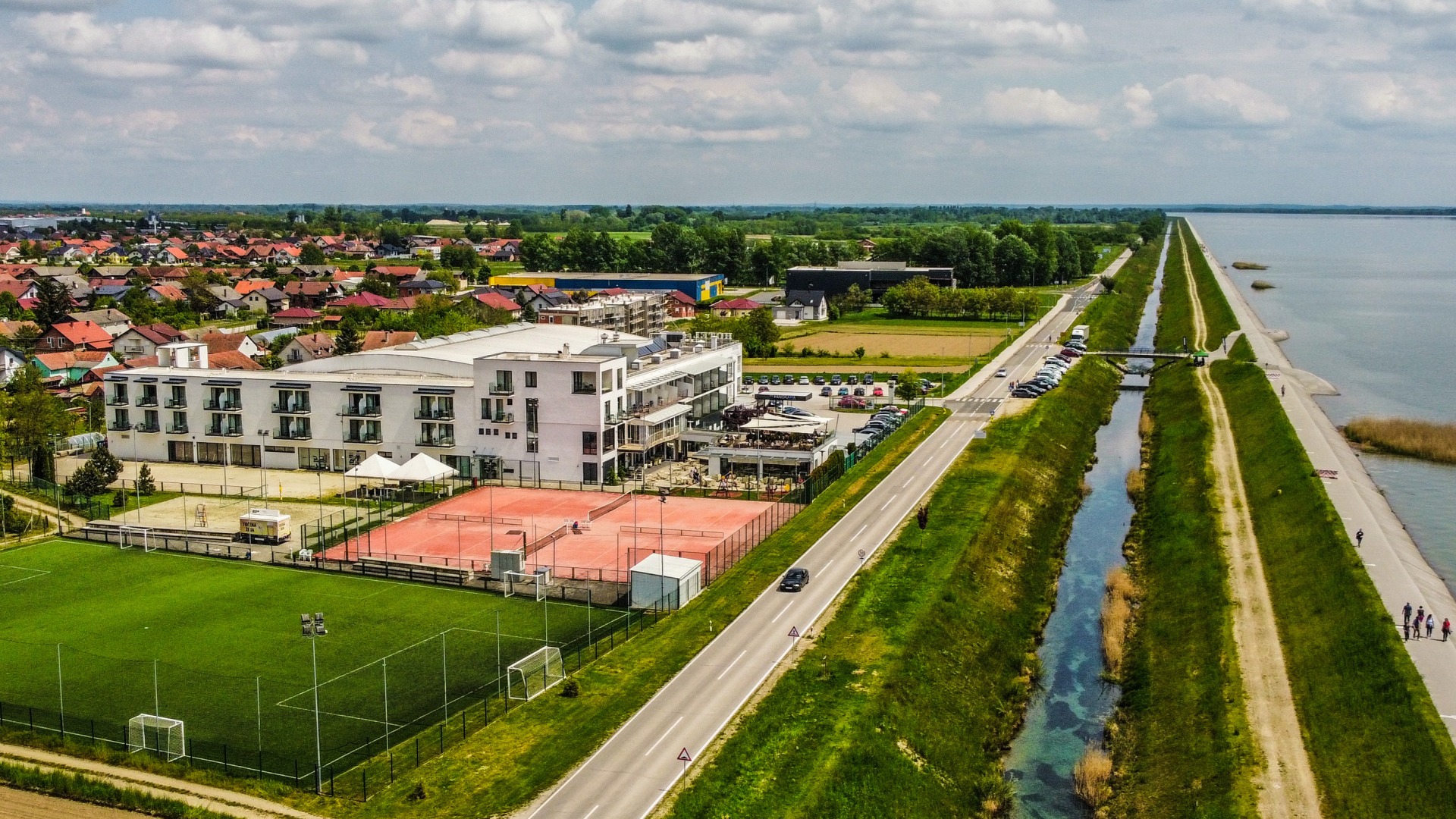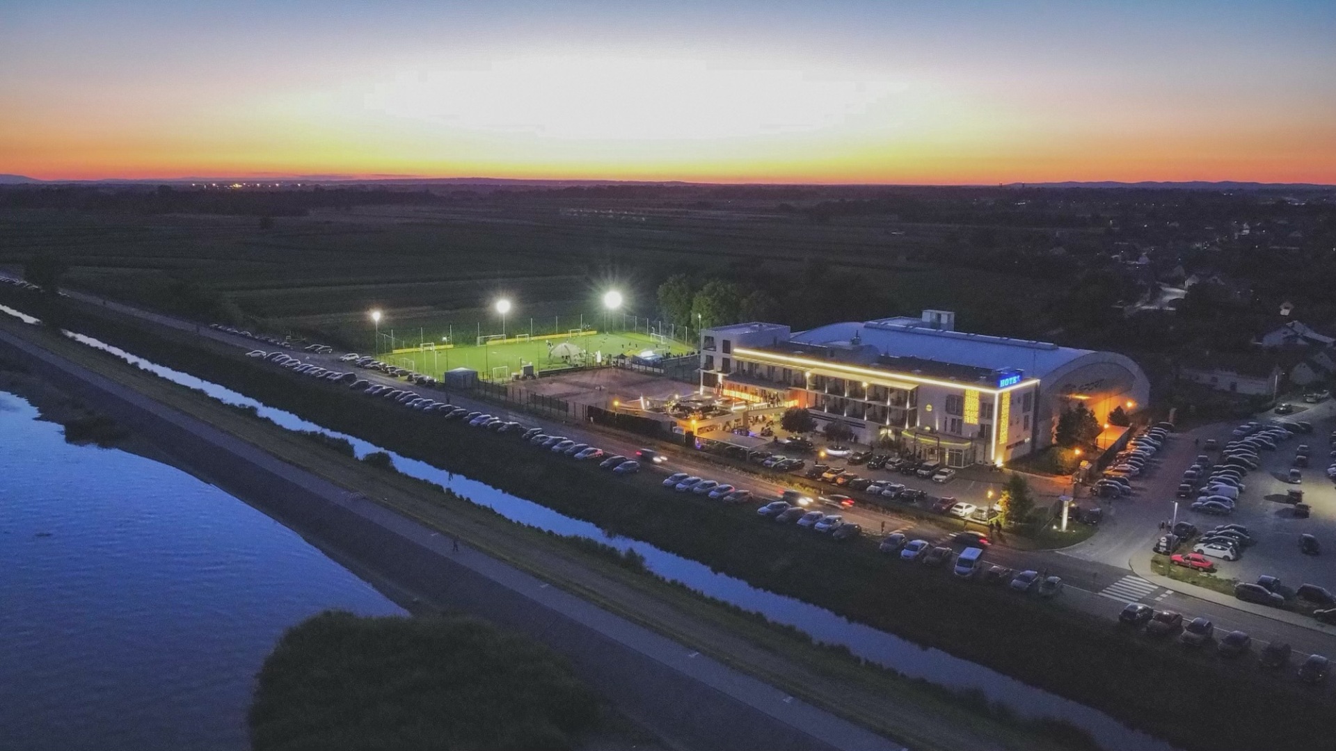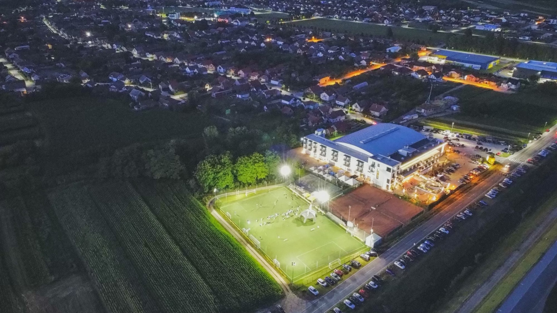 Optimalni broj igrača u jednoj ekipi je 7+1. Unutar velikog igrališta nudimo mogućnost najma tri terena dimenzija 40x20m. Nogometni tereni sportskog centra vrhunske su kvalitete i profesionalno održavani tijekom cijele godine. Tako da se tereni koriste kroz cijelu godinu. Veliko igralište na umjetnoj travi dimenzija 60x40m